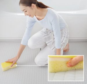 LIXILのキレイサーモフロアは清掃性と快適性にこだわった床です。浴室をきれいに保つには、皮脂汚れがつきにくくするのがポイントです。